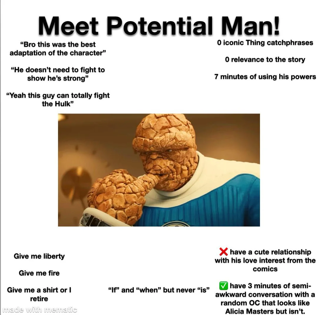 >>4005280 Я все таки надеюсь что кепку вразумят и уговорят на фулл перезапуск, WB же решились, и у супера как раз итоговые сборы будут выше чем у ф4, как пощечина
