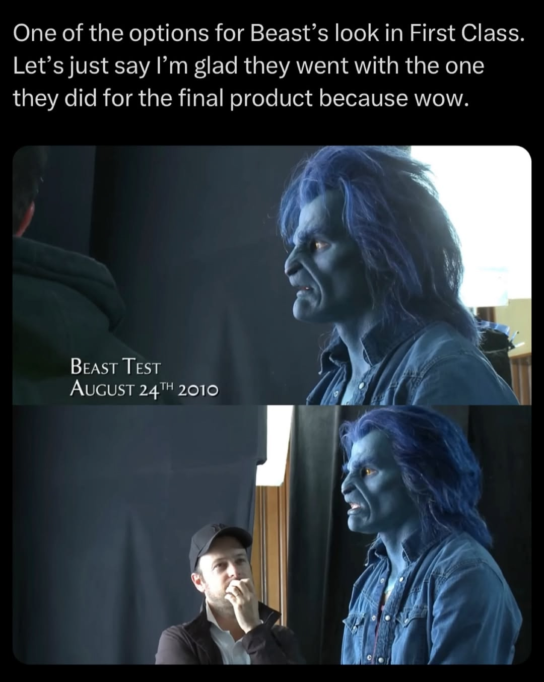 Кринж: 1. Сцена где маккэвой зачем то признается циклопу, что он все это время был pdf файлом и всегда любил жин, не платонической любовью. Эт прям пиздец, нахуй он сам сказал это её же ебырю, я прям охуел когда смотрел в кинотеатре, лучше было бы если жин сама это увидела пока лазила в его лысой бошке, как в оригинале и было. 2. Графон в финале, и в церебро 3. Опять магнето, хотя черно-серебристый шлем прикокная расцветка. 4. Слишком много пересьемок которые прям видны при первом же просмотре. Фильм ощущается как лоскутное одеяло сшитое из разных плохо состыкованных кусков