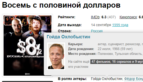 Мой Кузен Винни, Пошел ты Фредди, Борат, Ирония судьбы, Иван Васильевич меняет профессию, Кавказская пленница, Выпускник, Большой (1988), В петле (2009)