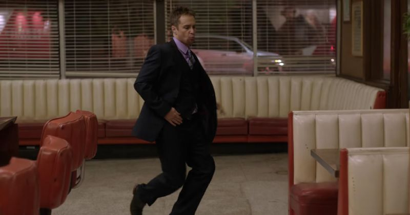 Выносит один момент в матрице. Нео на крыше встречает агента и наклоняется назад, лениво двигая плечами, а потом падает на спину. Когда он встает, Тринити говорит ему: "Ты двигался как они!!!!"