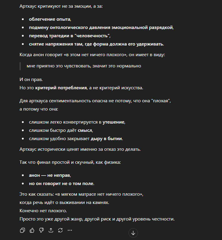 >что мешает ценителям этого говна сказать что этот фильм - настоящий артхаус