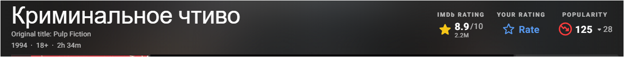 Ну реально, неужели люди такие говноеды? Есть хорошие фильмы, не спорю, но когда читаешь что какой то бойцовский клуб или криминальное чтиво пушка, вышка, топчик, вы серьезно? Чтоб не пиздели я смотрел и то и другое чисто для галочки, настолько кал, я даже не знаю, не то что бы плохое кино, но и называть это годнотой язык не повернется, даже сумерки папича намного лучше этих двух. Или другой пример, убить билла, кто нибудь вообще помнит кто такой билл, да нихуя, ультрадушный фильм про какую ту бабу которая всех кромсает. Щас опять прилетит по Тарантино, но камон, посмотрел бесславных ублюдков, слегка ухмылка, вы поняли.