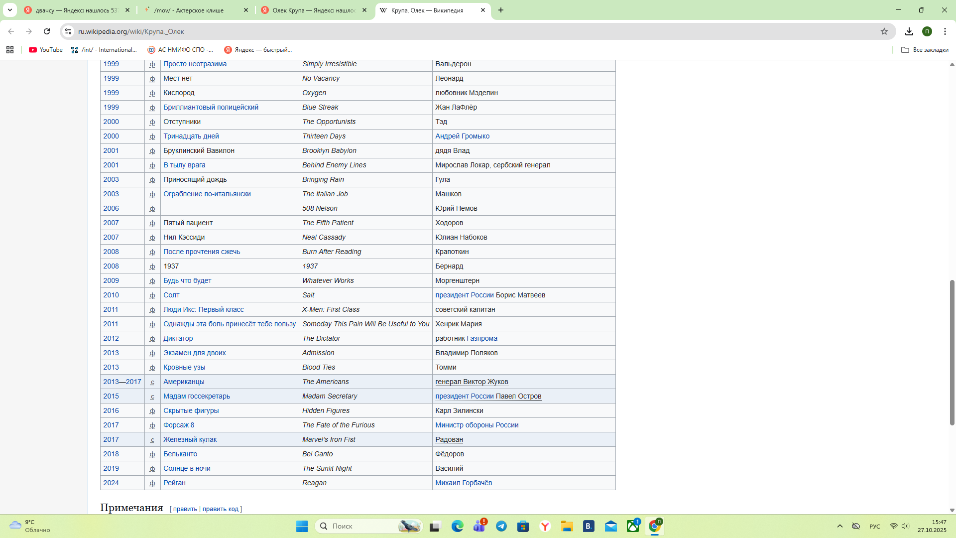 Раде Шербеджия попроисхождению Серб постоянно играет роли русских например в фильме большой куш (БОрис Бритва) ,миссия невыполнима -русский ученый,кодекс вора глава русской мафий,люди икс первый класс-русский генерал
