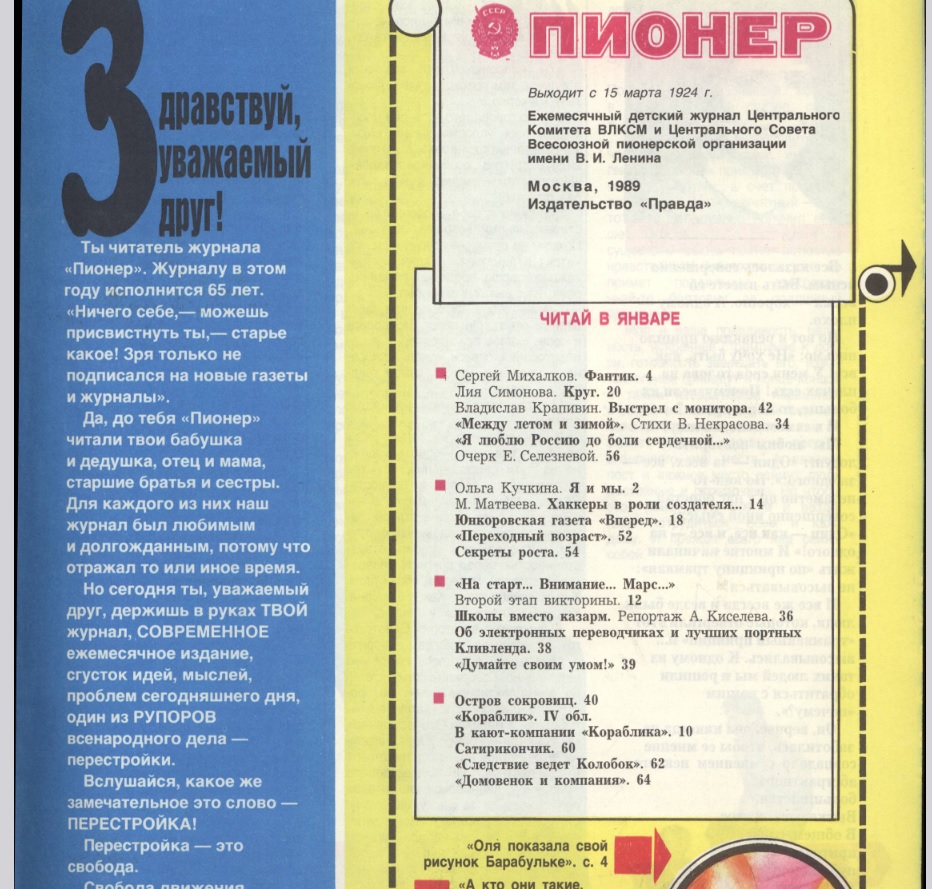 >>3765336 >держишь в руках ТВОЙ журнал >СОВРЕМЕННОЕ ежемесячное издание >один из РУПОРОВ всенародного дела >замечательное это слово - ПЕРЕСТРОЙКА >дорогой ДРУГ и уважаемый БРАТ