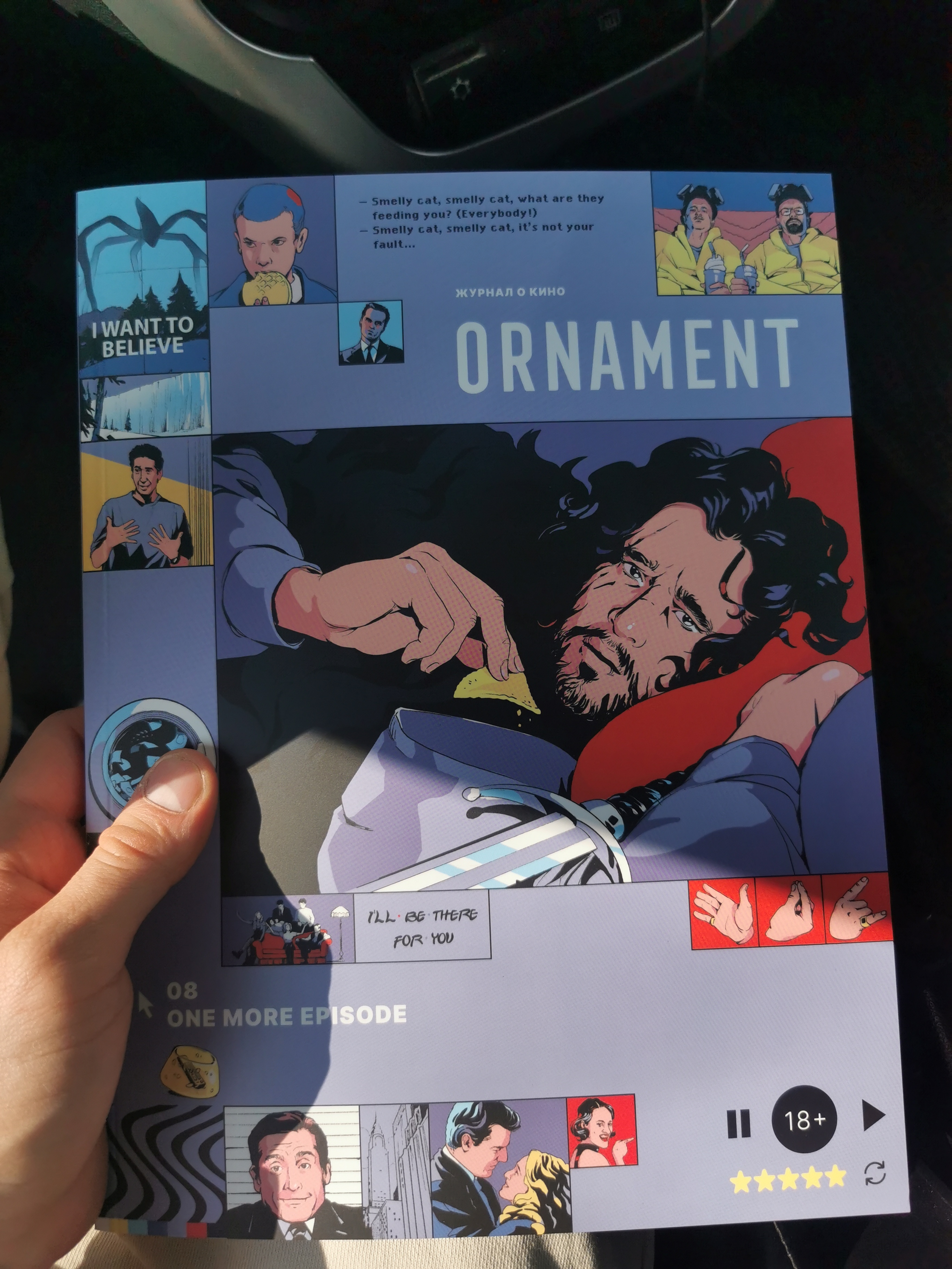 >>3931039 Журналы вышли 3к в сумме. Их щас всего вроде бы 12 или 13, было бы прикольно все собрать. Там не только сериалы есть, просто остальные разобрали и продают дорого слишком. Можешь загуглить - орнамент. Оформление прикольное, выпуск о Твин Пикс понравился больше, может потому что Линча люблю (особенно Blue Velvet). А вот выпуск с сериалами лучше заменил бы на Тарантино или выпуск о триллерах. Потому что не фанат всяких нормисных друзей, офис и тд. Чистые комедии не воспринимаю вообще.