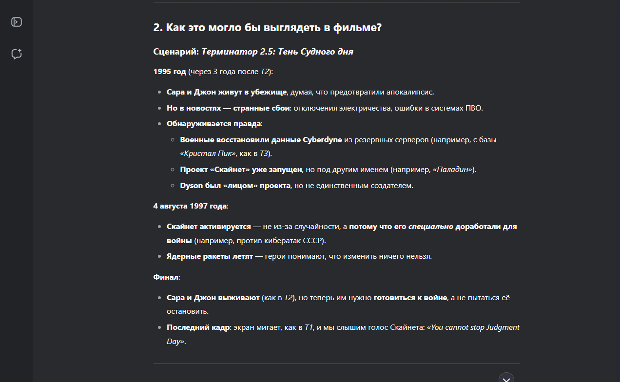 Интересно режиссер обдумывал сценарий до выхода AI. Аватары конечно здорово. Но к истоком становления, не поверю что не пробовал писать еще про терминатора, хоть заметки. Даст ли буст это, если напишет сценарий и подправить с AI чатом. Заодно делиться ни с кем не надо.