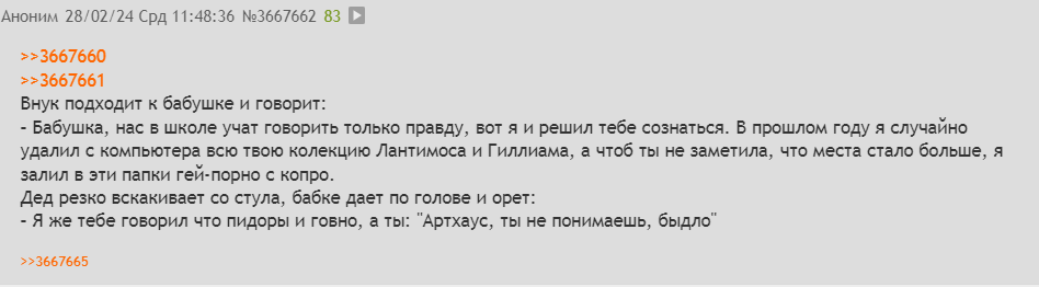 >>3978216 >Клык Вы меня, походу, абсурдом закормить решили, вчера Покрышка, сегодня это. Батя, больной ублюдок, инцестом выращивает двачеров, лол. Идея нитроопеки, конечно, не нова, но утонченную ебанутость этого психопата и всего происходящего я немного заценил, прям сферический арт хаус. Но нужна пояснительная бригада, есть ли СКРЫТЫЕ СМЫСЛЫ или это просто такой перфоманс?