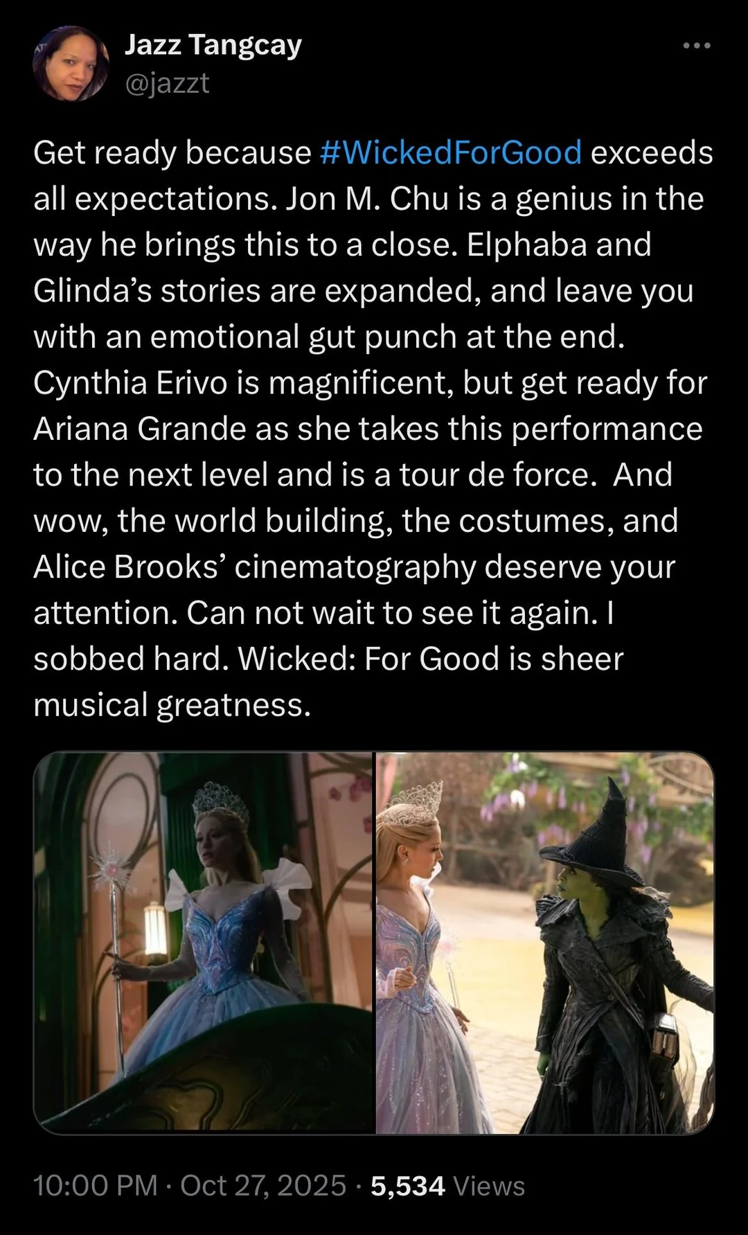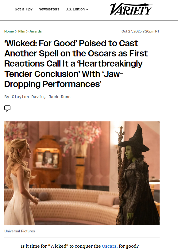 Трейлер величайшего киномюзикла в истории кинематографа "Злая: Навсегда" ("Wicked: For Good") посмотрели 113 миллионов раз за первые 24 часа после публикации! Что? Да!