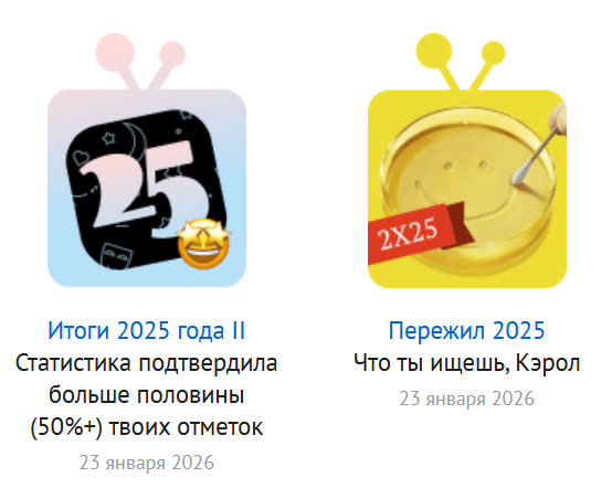 С сегодняшнего дня в профиле каждого пользователя доступна персональная статистика за 2025 год. Это отличная возможность ещё раз вспомнить, с какими фильмами и сериалами вы провели последние 365 дней.