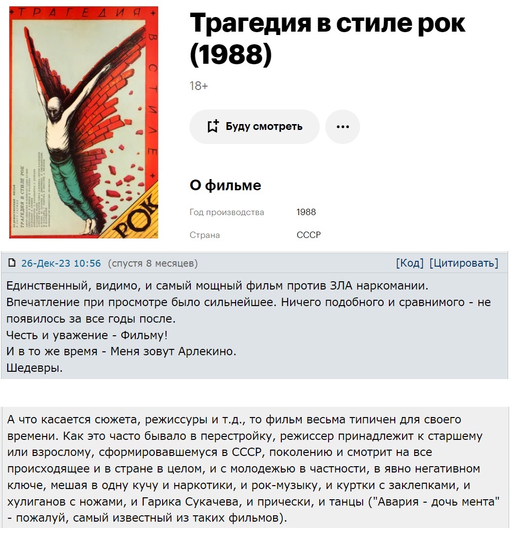 >>4056590 Ладно, извини. Вспылил чуток. Задел меня за живое, так низко оценив фильм, который среди меня входит в топ-5 перестроечных лент. Не могу в нём найти недостатки, даже по меркам мирового кинематографа. И мне казалось, что каждому любителю кинопродукции той специфической эпохи он не может не вкатить.