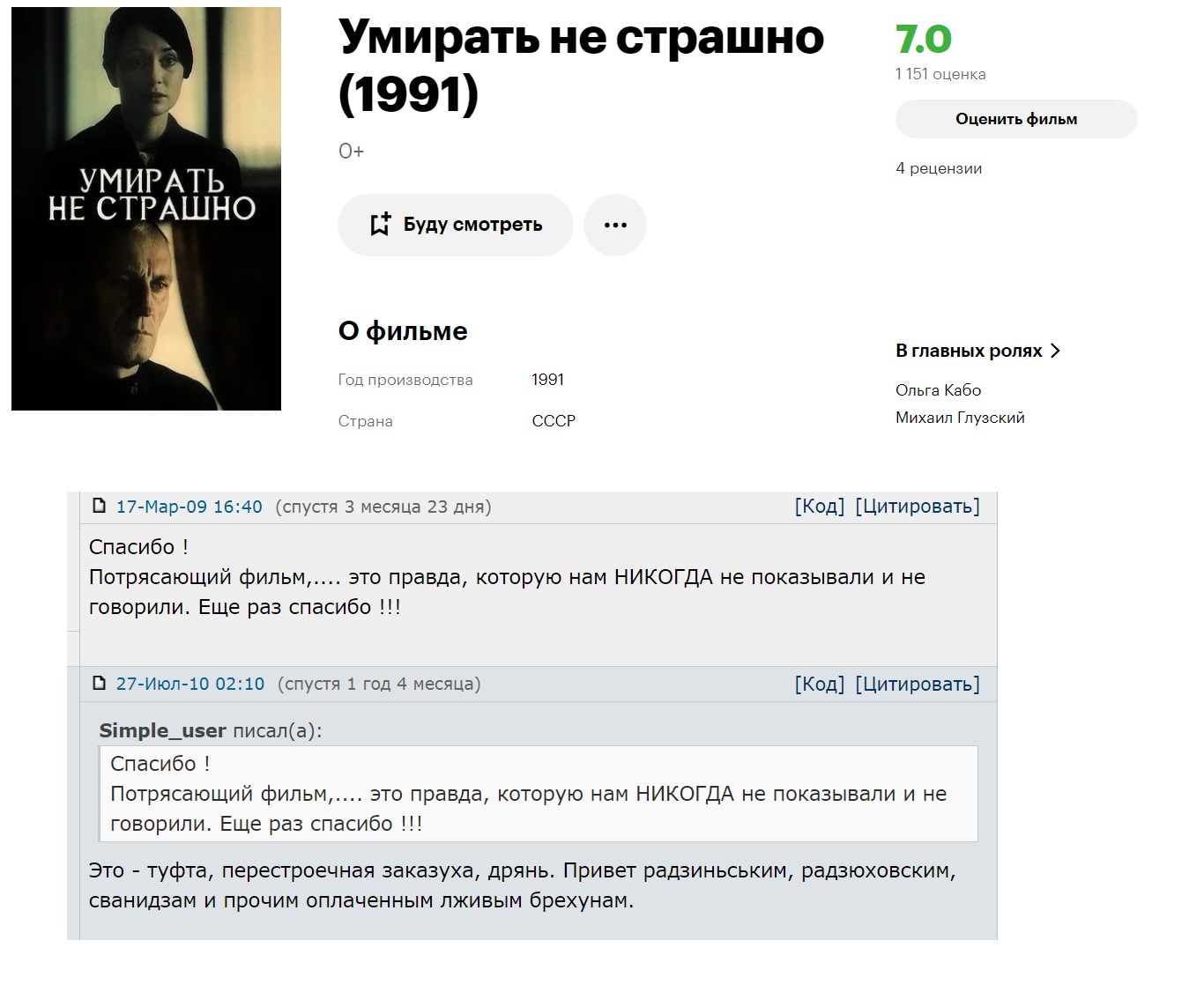 Еще смотрел Джой в Москве, французский околоэторичный треша. Примечателен, что не постестнялись сверкать сиськами и жопой прямо на красной площади. Ну и плюс Секс и перестройка (нескучный сад) снятого на деньги Стаса НАмина, иноагента и нацпредетеля Амнуэля. Примечателен появлением Сергея Троицкого и байкера стража традиционных скреп Хирурга-Залдостанова.