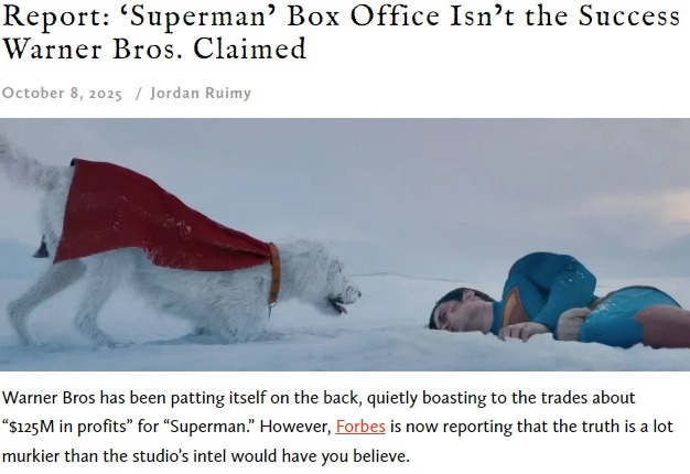 Издание Forbes поставило под сомнение кассовый успех «Супермена» режиссёра и сценариста Джеймса Ганна. Напомним, что у главного постановщика была своя точка финансового триумфа — 500 миллионов долларов. Если удаётся заработать в мировом прокате более полумиллиарда, то кинокомикс считается окупившимся.