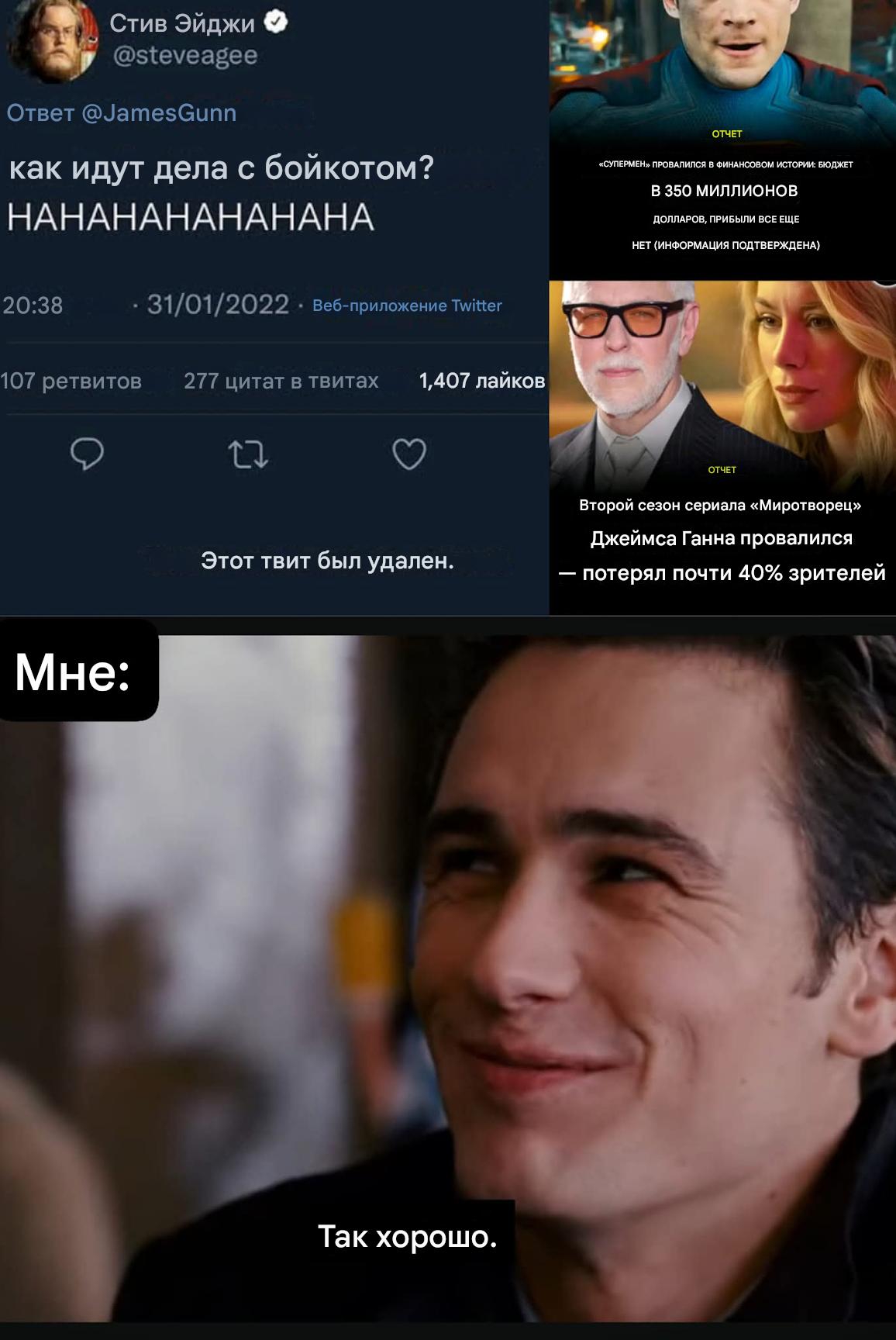 Вот даже ганндона взять: видно же падение качества у чувака после Стражей 1, а брать его рулить дисей после сасай сквада два? Он даже своего же миротворца во втором сезоне банально развалил нахуй, эту хуету даже на перемотке смотреть сложно.