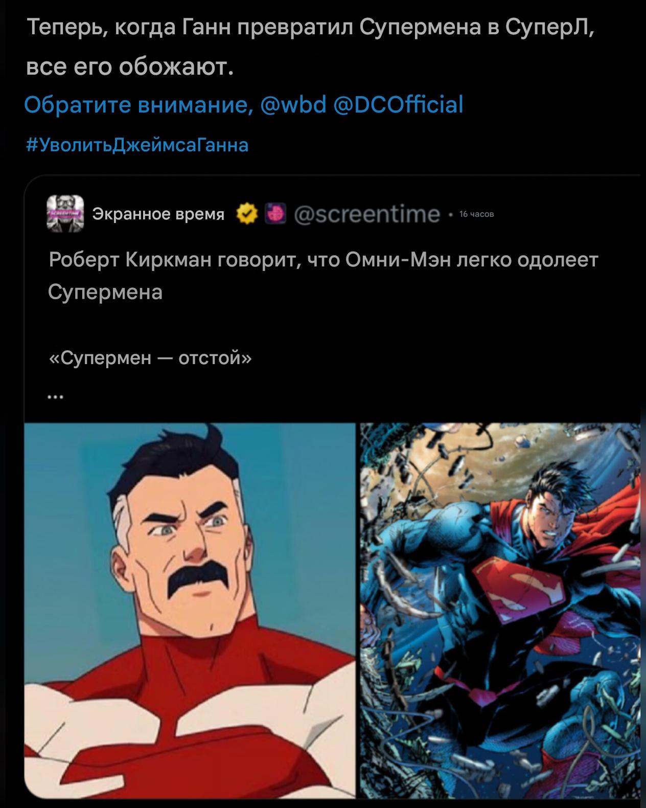 Короче, посмотрел Супермена нового. И пришел к заключению, что пидораны в 20-40 лет смотрят фильмы для детей, а потом высираются на двачах, что им было скучно. 7-летний сын был в восторге, теперь заебывает купить комиксы про Супермена. Ганн всё правильно сделал, значит.