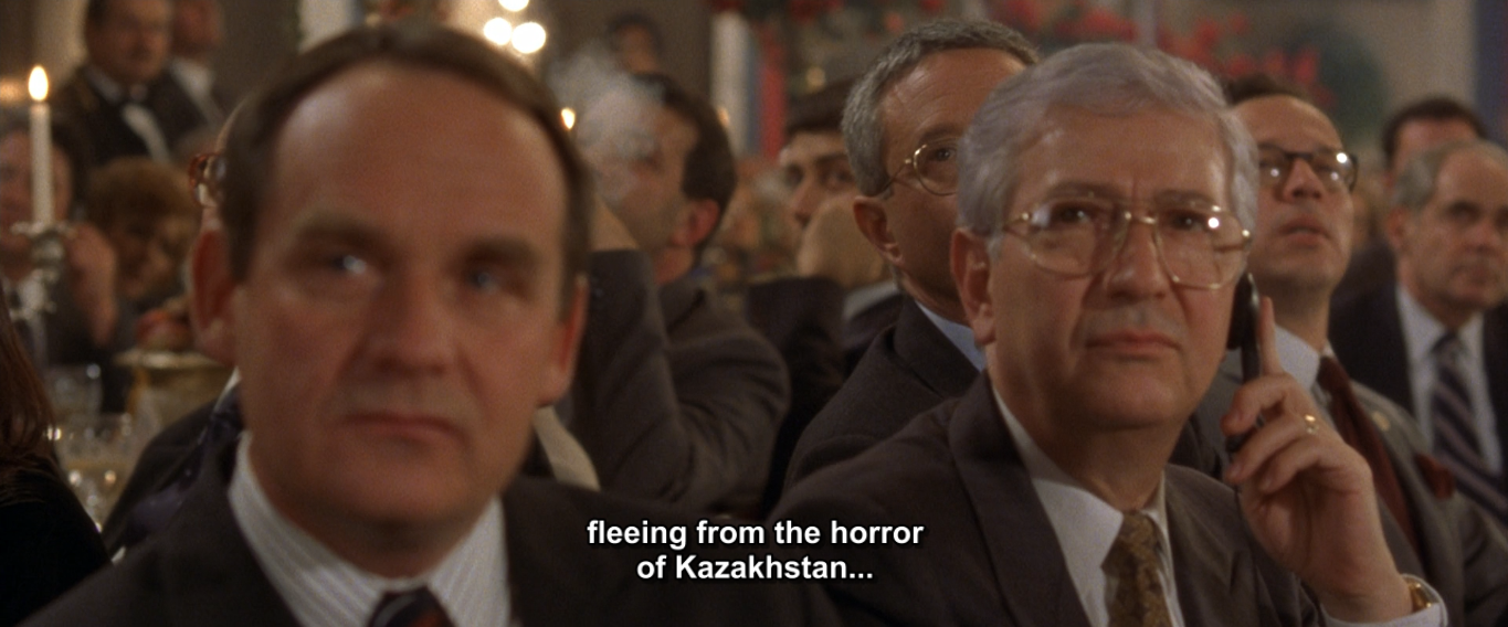 Но больше всего мне нравится, как и в фильме целом, игра Кэри Гранта: какая бы хуйня с ним не происходила, он демонстрирует удивительную жизнестойкость. Он не Джеймс Бонд с «крутым» взглядом с рекламного постера, а скромный и уязвимый обыватель, но при этом умеющий держать себя в руках в момент «пограничного состояния» (по Сартру), когда зачастую, наоборот, казалось бы с виду крутые люди в критических ситуациях начинают обсериваться. Грант в фильме не демонстрирует даже испуга, он словно как бы и «простой (пусть и офисный) работяга», вырванный из повседневности и выглядящий неуместно в этом дресс-коде посреди мухосрани; и в то же время достаточно сильный, чтобы не терять благородного лица перед силами, которые значительно превосходят его своими возможностями.