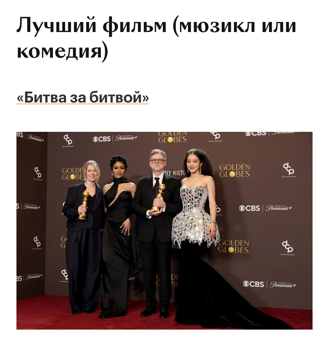 Журнал Time назвал Леонардо ДиКаприо артистом 2025 года. Его отметили за признанную критиками и зрителями роль в драмеди «Битва за битвой» Пола Томаса Андерсона. Фильм также принес 51-летнему актеру номинацию на «Золотой глобус»-2026.