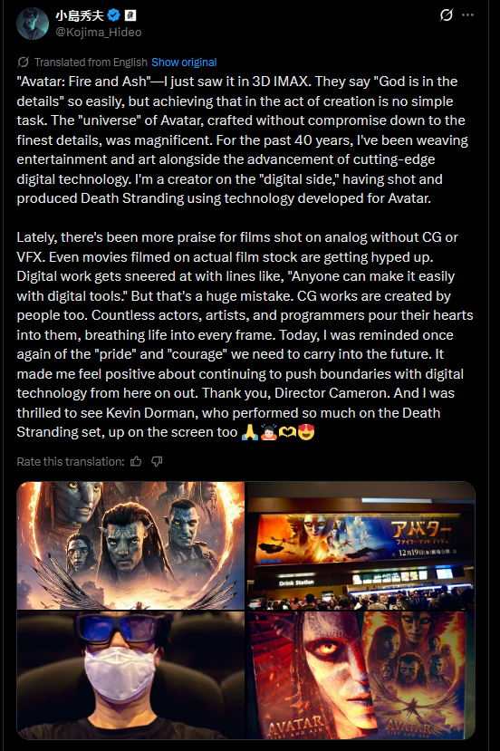 Да, Way of Water это кайнда ремейк первого фильма. Да, Fire and Ash это кайнда ремейк Way of Water. Но дорогие мои, мы переживаем момент времени, когда искусство качественного блокбастера рутинно дискредетируется безрукими и безыдейными, а некогда рукастые и полные идей красавы продают своё видение стриминговым оверлордам, где это видение успешно морфирует в кал. Тем временем, Джеймс Кэмерон не получил рассылку и ебашит как будто он до сих пор в 90-х, накрывая роскошный стол тематически обогащённой, эмоционально резонирующей и абсолютно вдаливающей в кресло своим экшеном вкуснятины, из за которого встаёшь тяжёлый как тулкун.