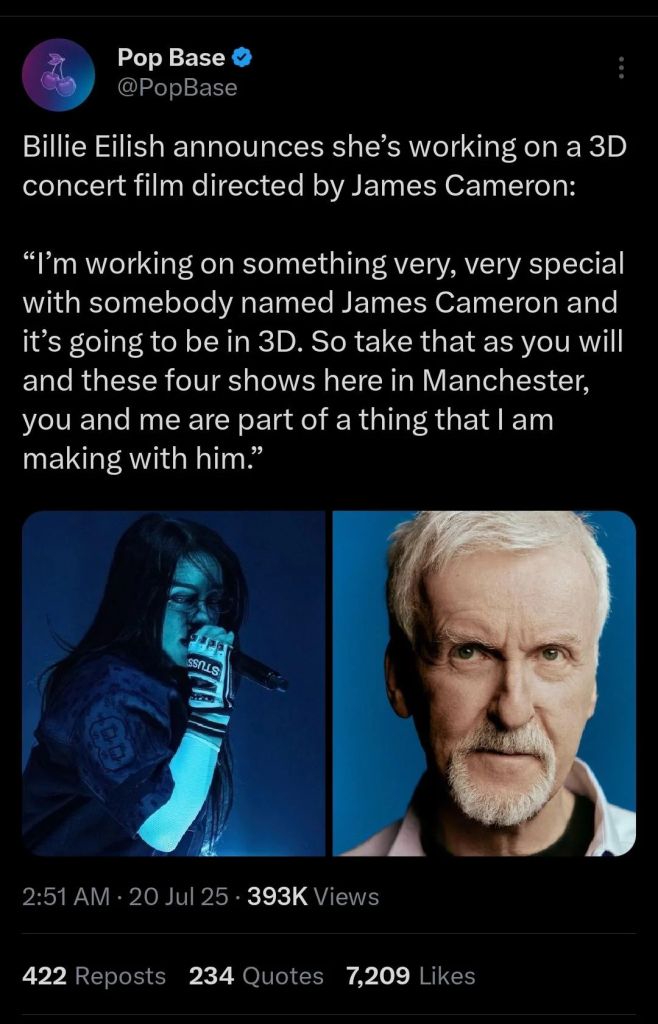 >>4092502 (OP) >Теперь, накануне выхода "Аватара 3" в кинотеатрах, Кэмерон подтвердил, что проект по "Терминатору" получил зеленый свет. После того как ажиотаж вокруг "Аватара" уляжется, режиссер планирует переключить внимание на культовую франшизу. Это он так сливается под шумок?