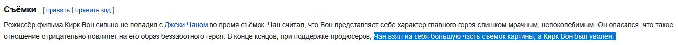 >>4095579 >На съемочной площадке Сигал утверждал, что из-за своего обучения айкидо он «невосприимчив» к удушению до потери сознания. Услышав об этом Джин Лебелл (координатор трюков в фильме) решил предоставить Сигалу возможность доказать свои слова. Лебелл обхватил Сигала руками за шею, и как только Сигал сказал «давай», начал душить его до потери сознания, при этом Сигал обильно опорожнил кишечник[3]. Лебелл много лет отказывался от комментариев и подтвердил эту историю лишь в 2012 году[4]. Когда Сигала спросили об инциденте, он прямо отверг обвинения, назвав Лебелла «больным, патологическим подонком-лжецом», и назвал имя свидетеля, который мог бы доказать, что Лебелл сфабриковал всю историю[5]. Это заявление вызвало бурную реакцию со стороны ученицы Лебелла Ронды Раузи, которая сказала, что Сигал лжет, и заявила: «Если [Сигал] скажет что-нибудь плохое о Джине мне в лицо, я заставлю его обделаться во второй раз»[6]. сигал как обычно