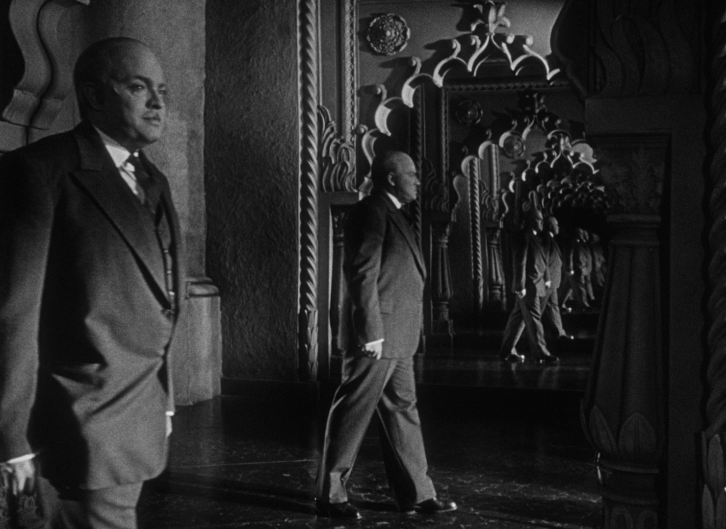 От этих экспрессивных форм и резких затемнений не по себе. Его замок нагоняет больше жути, чем сами фильмы ужасов. Да, обычно говорят, что это метафора душевной пустоты Кейна, но эти расстояния напоминают и визуализацию космического пространства, с подчёркнутой ничтожностью жизни перед масштабами Вселенной.