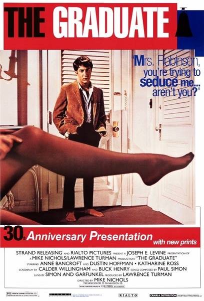 Выпускник. Милфа соблазняет Дастина Хоффмана. Яркого сюжета нет, но сделано недурно. Здорово ощущается летняя жара и тревожность гг. Сцена вечеренки в самом начале понравилась больше остального + саундтреком мемная песня Саймона и Гарфанкеля