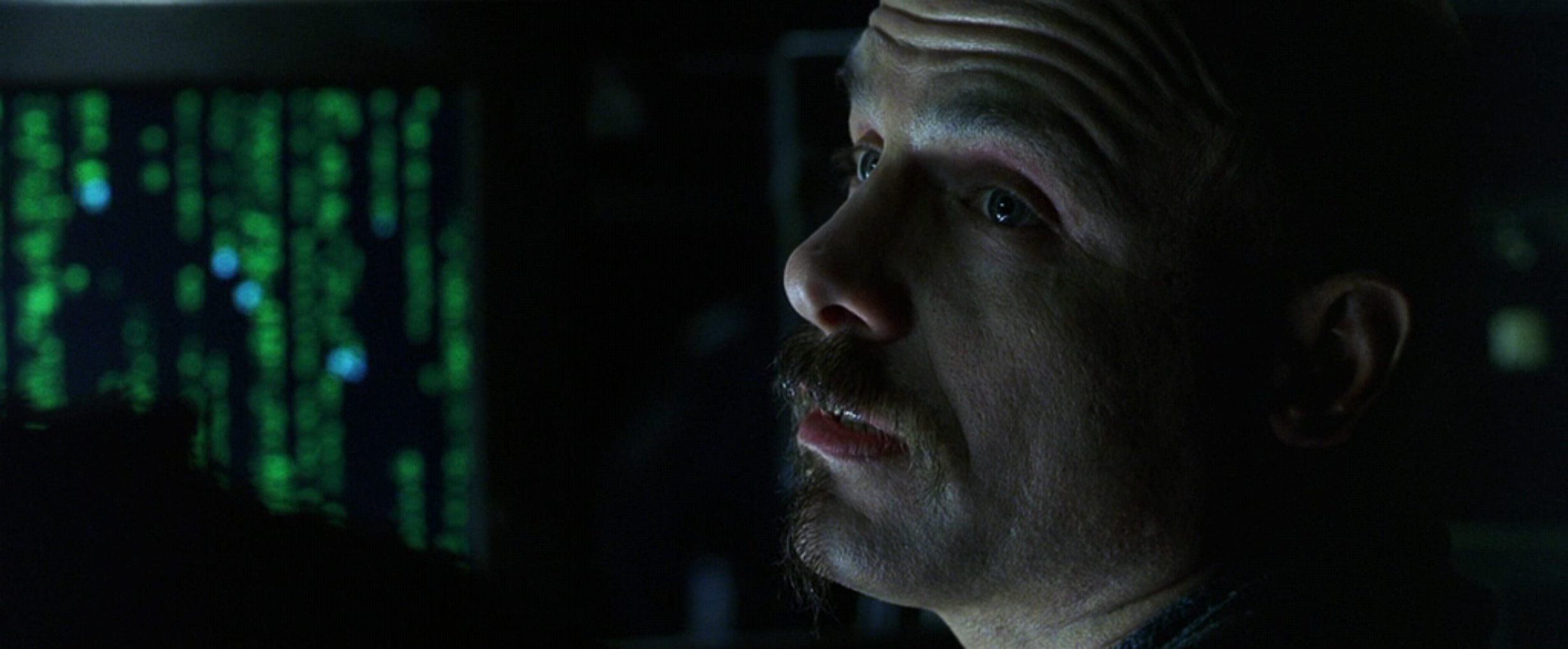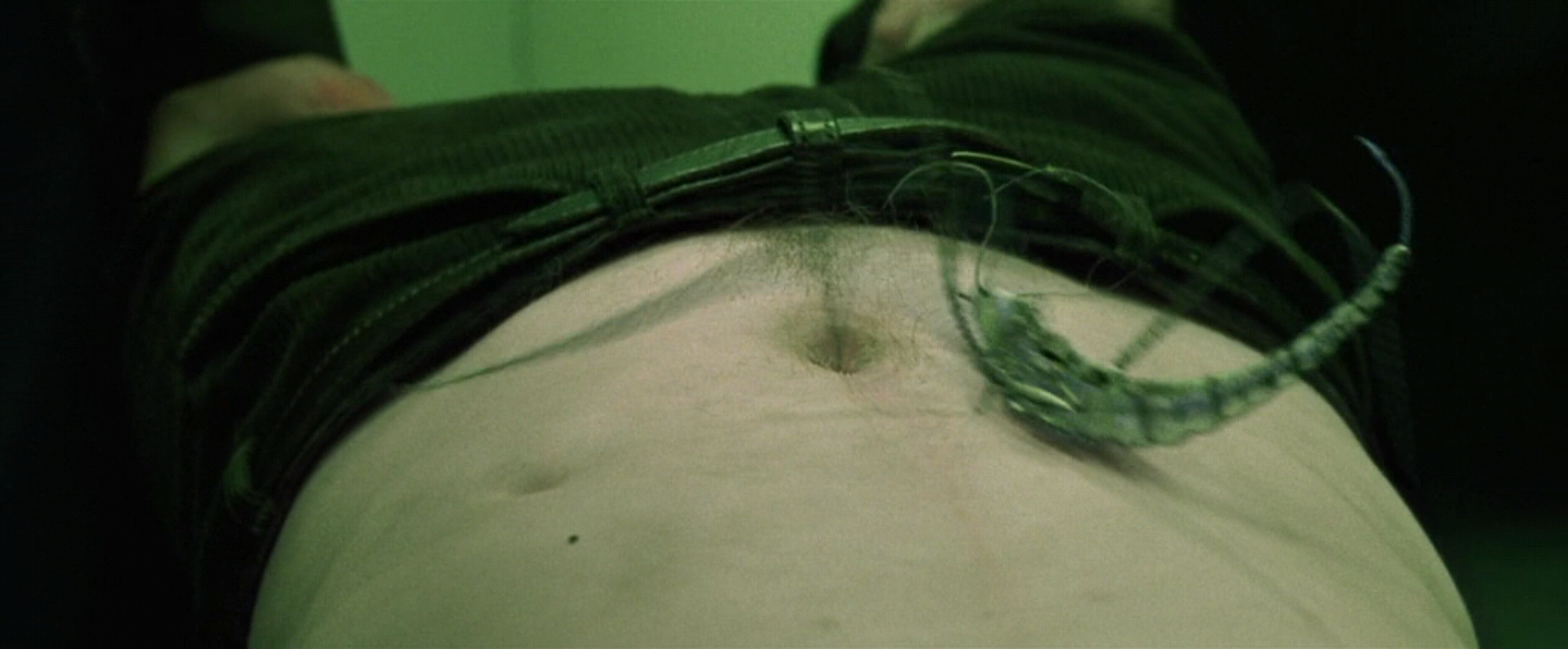 У Киану Ривза два пупа? Что это за второе отверстие слева? Ну или у дублёра его. Необязательно же для такой сцены задействовать топ-звезду "На гребне волны", "Джонни-мнемоника", "Скорости" и "Адвоката дьявола". Можно снять пузяку любого чма за шоколадку. С чма стребовать шоколадку за право сняться у батьев Вачовски. Алсо почему жучка не запихнули в анус вместо пупка?