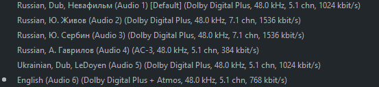 Еще заметил, что WEB-DL рипы с качеством звука 768кбит/с ХРИПЯТ на большинстве сложных моментов. То есть это фактически полное говно и несмотрибельно. Почему так? Приходится качать блюреи. Музыка 320кбит/с же никогда не хрипит и всё заебись.