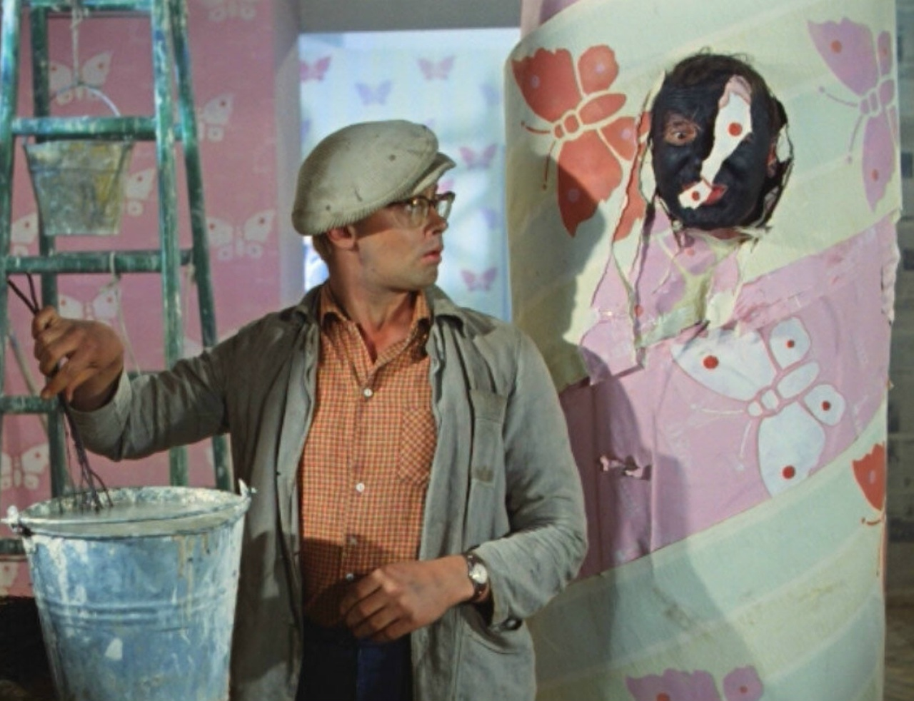 · Погоня и ловушка: Погоня по стройке с использованием её объектов — это прохождение через лабиринт стихий (земля, металл, древесина). Федя, движимый слепой яростью (огнём), сам забегает в ловушку. · Закатывание в рулон обоев: Это ключевой символ. Обои с узором — искусственный, повторяющийся порядок, поверхностная, но сковывающая форма. Федя, дикий дух хаоса, буквально инкапсулируется, связывается и обездвиживается этим формальным порядком. Это его полное подчинение внешней структуре. · «Разъяснительная работа» (бичевание): Это центральный ритуал инициации и очищения. · Выяснение имени, возраста: Лишение анонимности, присвоение индивидуальной кармы. · Вырезание отверстия в районе ягодиц: Символическое обнажение «низшей», животной природы для целенаправленного воздействия. · Бичевание мокрым прутом: Прут — инструмент исправления, «огненный» луч правды. Мокрый — соединение стихий воды (покаяние, очищение) и огня (боль, кара). Удары — это акт принудительного «беления», выжигания скверны через страдание. Шурик здесь окончательно меняет архетип: из трикстера и жертвы он становится Ритуалистом и Жрецом, проводящим обряд порки как финальную стадию перековки.