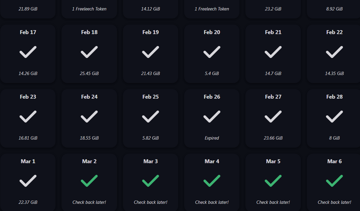 >>4134588 Делать мне нехуй, кликать на подарочки каждый день, когда одну кнопку нажал, 1Тб за пару часов получил. И кстати >>4134527, 10 дней сидировать необязательно, можно откупиться гигами, так что пользуйтесь