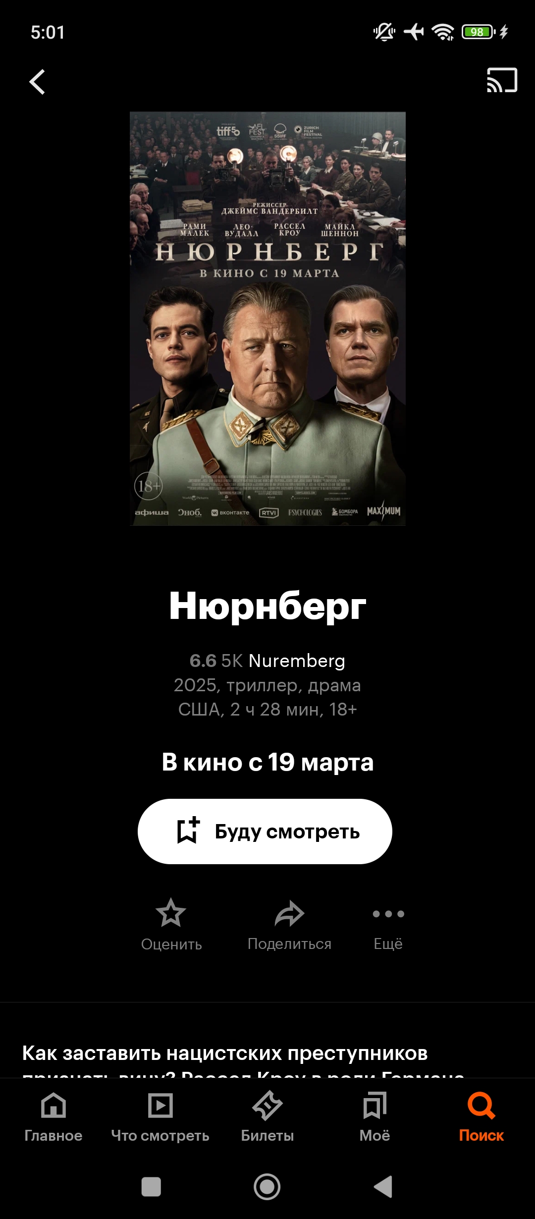 Американцы, которые законы о расовой сегрегации только через 20 лет после Нюрнберга отменили, и советские прокуроры, которые всего несколько лет назад сами десятки тысяч людей "судом" на смерть и в лагеря отправляли, занимают позиции обвинителей против нацистских преступников. И (несмотря на все это) добиваются успеха, на основании того какими впечатляюще ебучими ублюдками были нацисты даже в сравнении. И при этом вполне обычными людьми, урок чего фильм с переменным успехом пытается донести. Рассел Кроу отлично играет! 7,5/10