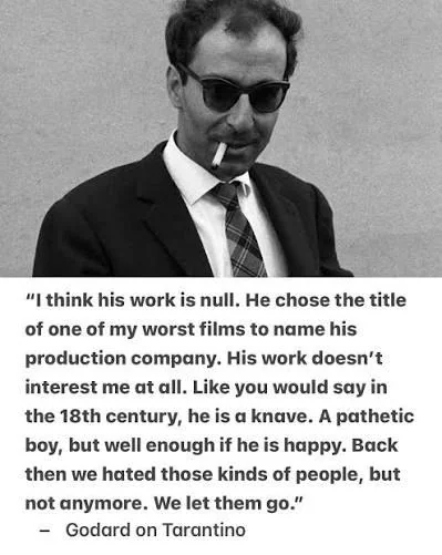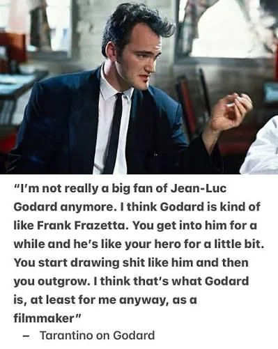 >>4122136 Годар обосрал Тарантино и собственный старый фильм, вот Тарантино и обиделся в ответ. Если б Годар этого не сказал, то продолжал бы оставаться кумиром Тарантино. Ну и к тому времени Тарантино уже считал, что превзошёл Годара и вообще всех режиссёров на планете