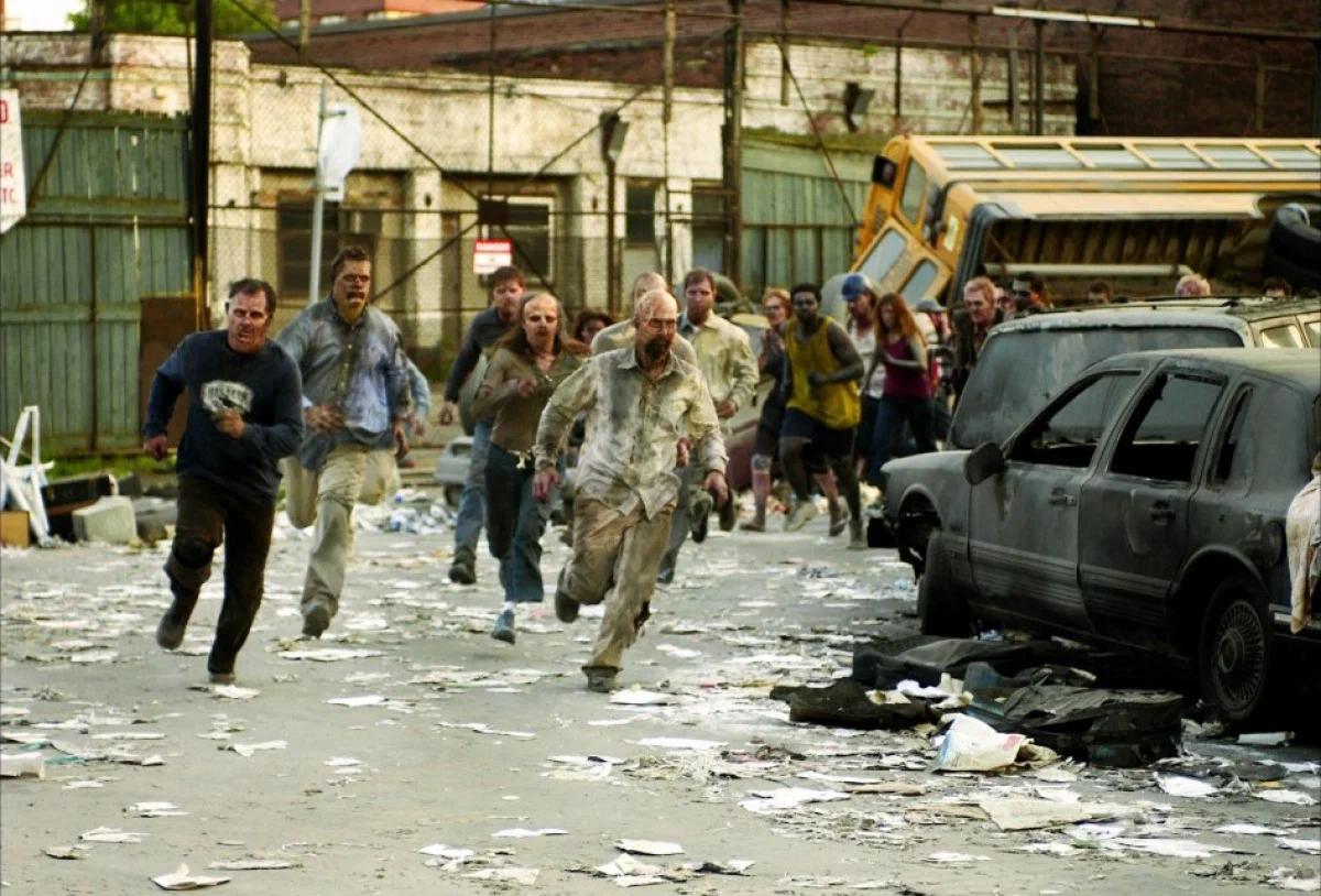 С учетом того, что население оповещалось о творившемся ужасе, там уже авиация должна была вовсю сбрасывать напалм на толпы заражённых, бронетехника - давить и расстреливать, но этого мы не увидим. Где авиация, где армия режиссёр? Чем вот такая толпа - не цель?
