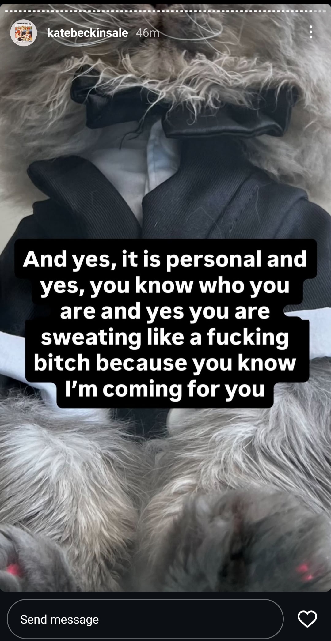 >>4127152 За пару лет умер любимый котэ, потом отчим (который всю жизнь был де-факто отец), на фоне этого Кейт сильно шизанулась на тему смерти ее родного отца в ее детстве, а сейчас умерла мать несколько месяцев назад. На Форчане ещё писали, что у Кейт порванные отношения с дочерью. Сейчас она 24/7 постит в инсту (в сторисы) шизу на все попало темы, от политики до личных драм, репостит какую-то нейрослопную хуйню, красит кота в розовый цвет, в общем, все ОЧЕНЬ плохо. А ещё про нее уже очень давно у всех сложилось впечатление, что у нее боязнь старения и смерти, она всегда яростно отрицала пластическую хирургию, даже когда это было ну совсем очевидно даже всяким сочувствующим женщинам.