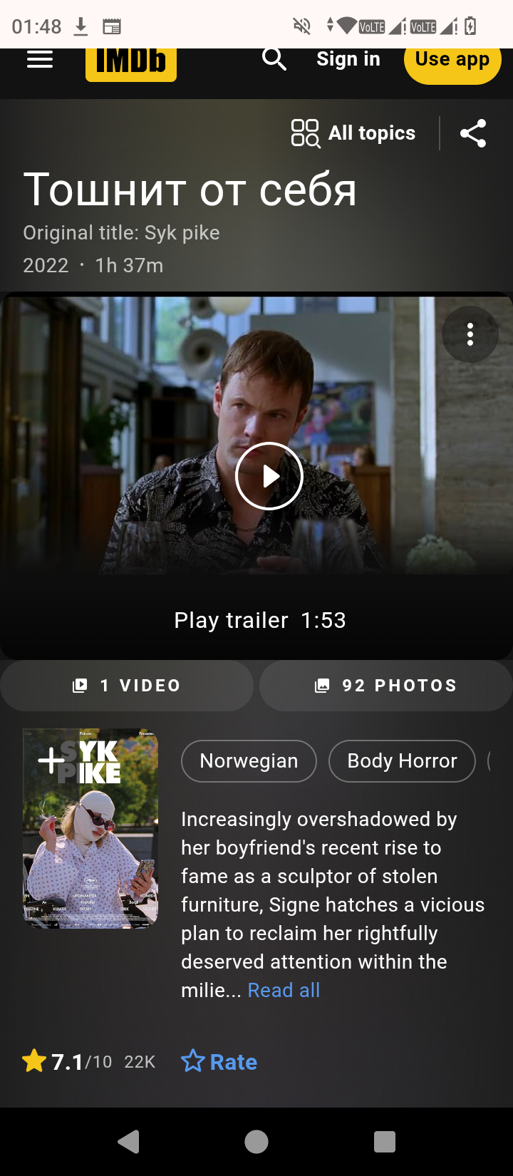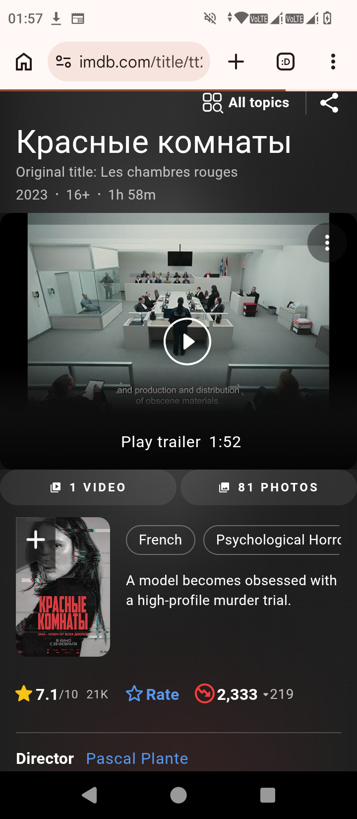 Оценка Актёрская игра: Джо Киири особенно хорошо справляется с ролью главного героя, создавая запоминающийся и тревожный образ. Сюжет: Интересный и оригинальный подход к теме соцсетей и славы через жанр ужаса и сатира. Атмосфера: Хорошо передана атмосфера страха и напряжения с использованием формата «найденных кадров», что делает просмотр более захватывающим. Отзывы критиков: Мнения смешанные, но игра актеров и социальная критика получили много положительных откликов.