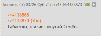 >>4138839 Анонам неприятно сидеть в одном треде с сумасшедшим, знаешь ли. Вбрасываешь какой-то фильм – шизик начинает визжать, что ты бот и постишь по велению куратора говно специально и требует какие-то тесты связанные с ПОрашей проходить. Втф.