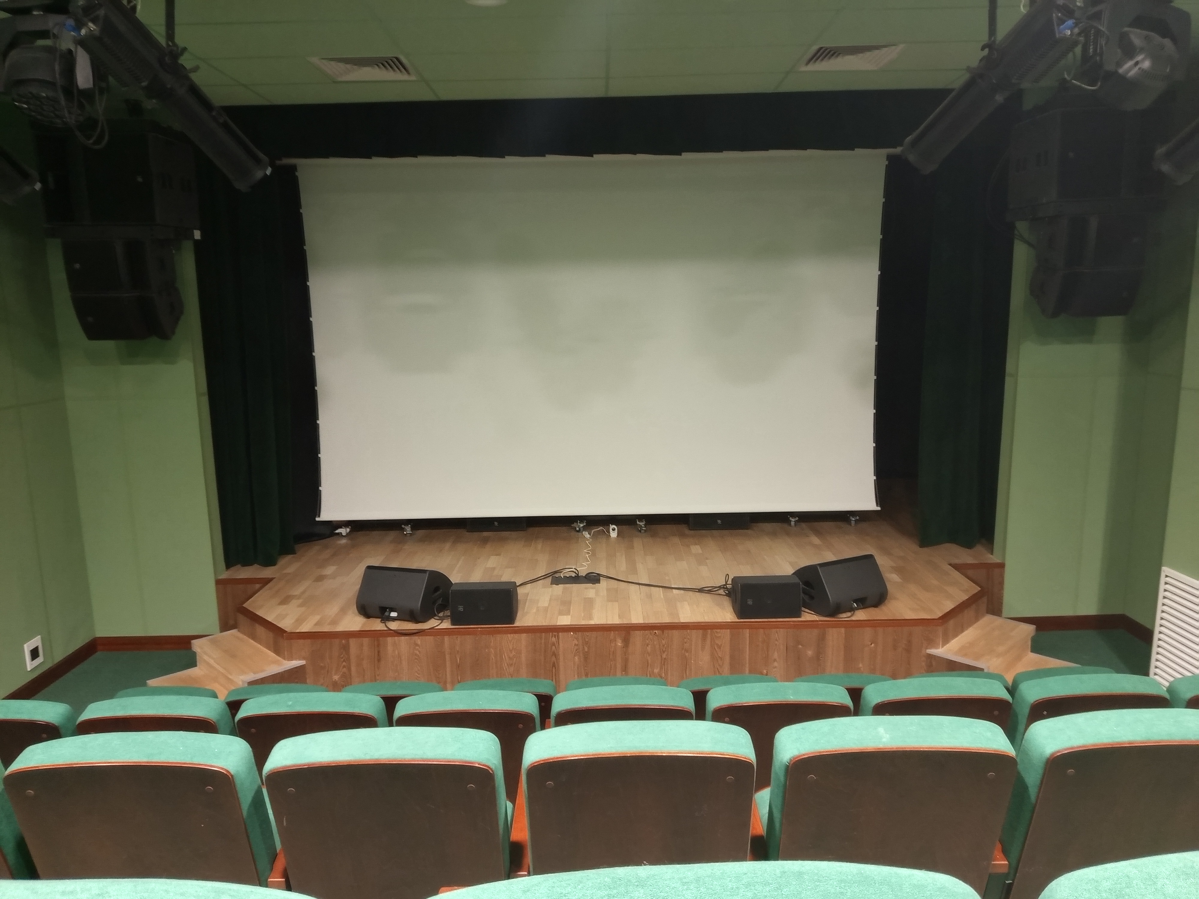 >>4136402 Зеленогорск, пригород СПб. Дом культуры на берегу Залива построили и крутят там кино. Родина Вицина, между прочим. Памятник в образе Бальзаминова тут же рядом с кинотеатром стоит. Это малый зал. Есть и большой на 300 мест. В большом звук лучше. И там сцена есть, где спектакли с концертами гастролируют. То есть, это не только кинотеатр.