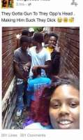 0:18 - в твиттере многие пишут, что это отец Трейвон Мартина (черного парня которого застрелили полицейские в 2012), но это музыкант из Лос Анджелеса Calvin II, на 03:08 он уже с мешком на голове.
