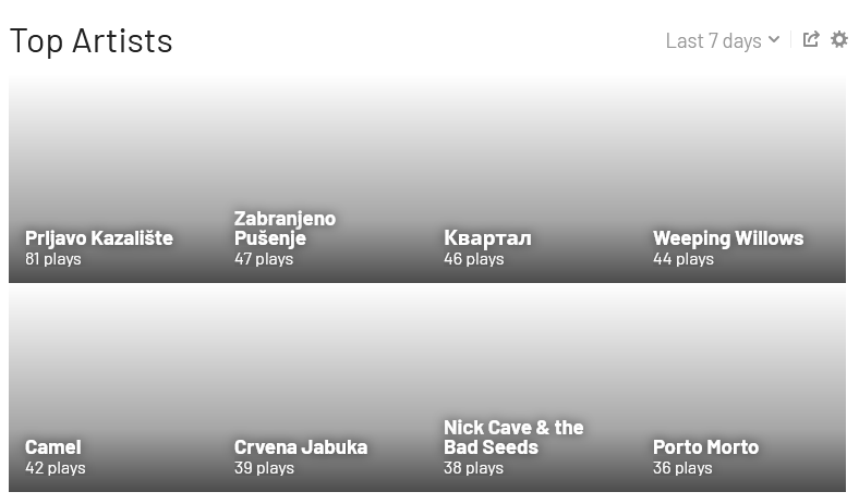 Мне похрен на Ласт.фм как на соцсеть, ибо там нет ничего, что могло бы привлечь меня общаться там: все неудобно и тупо. Но не похрен как на базу статистики: смотрю, как давно я последний раз слушал тот или иной альбом и понимаю, не пора бы его переслушать. Заодно он в свое время научил тому, чтобы приводить в порядок теги во всех песнях/альбомах, что скробблю (да, я слушаю музон с винта, а не из стримингов, и что вы мне сделаете).