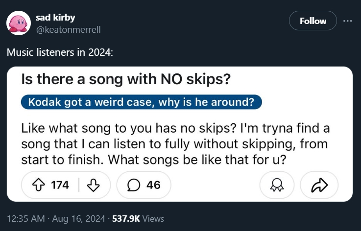 Плюс, сейчас как бы 2025 год. Перед кем вообще можно выебываться музыкальным вкусом, если большинство людей даже битлз не слушали?