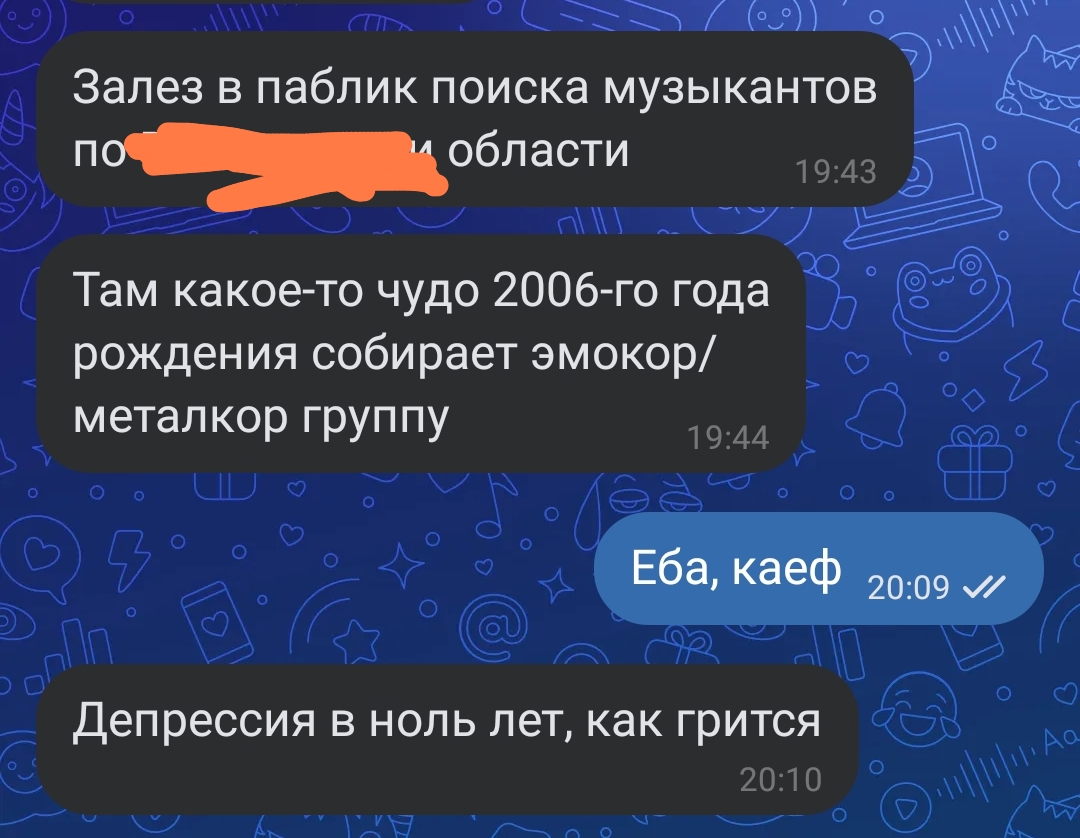 Это уважаемо, но я по другой теме всё же, припанкованный myspace мэйнстрим нулевых - моё, желательно чем ноунеймовее, тем пизже.