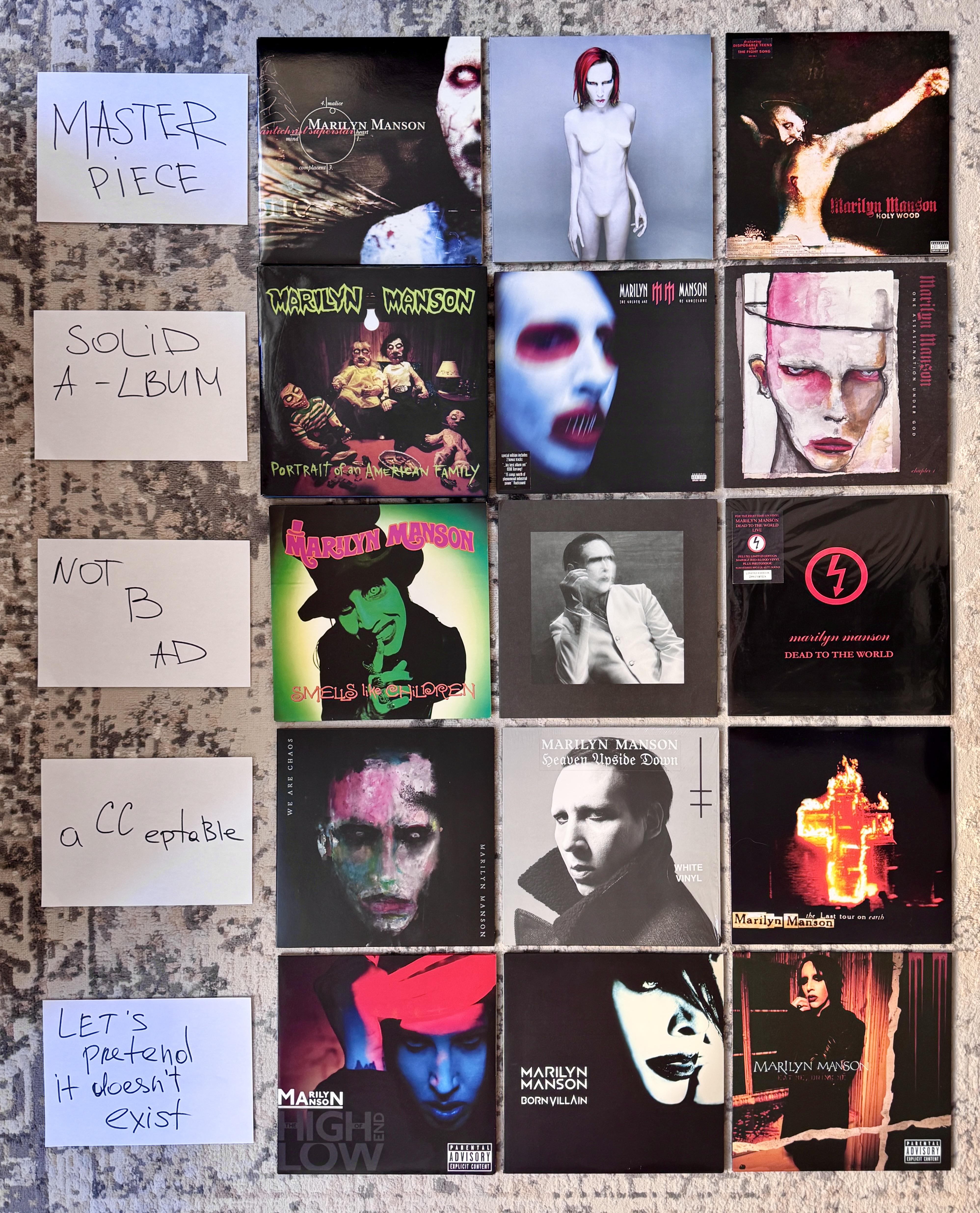 Мэнсон? Нормальный мужик, ночью сегодня как раз решил несколько треков с born villain послушать, в ночное время особенно "заходит". Но, проблема немного глубже. Дядя Уорнер уже старается " из штанов выпрыгнуть", чтобы сделать что-то новое, чего до этого не было в его творчестве. Получается очень иногда, даже редко. Он уже выглядит как уставший старый пёс, которому давно пора на пенсию.