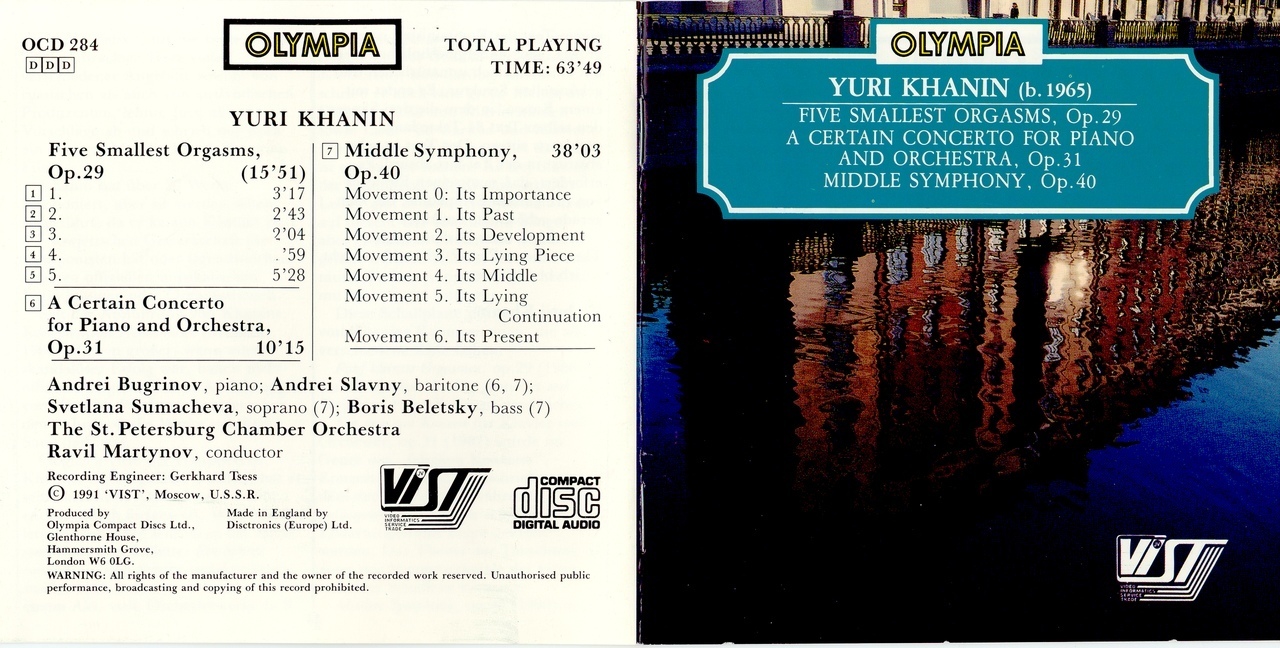 Да никаких. Музыка обычная. Мельком послушал Yuri Khanin: Orchestral Works. Респект за акцент на перкуссии, конечно. Но звёзд с неба не хватает. Когда уже слушал Нёргора, Холмгрина и Харрисона - такое мало впечатляет.