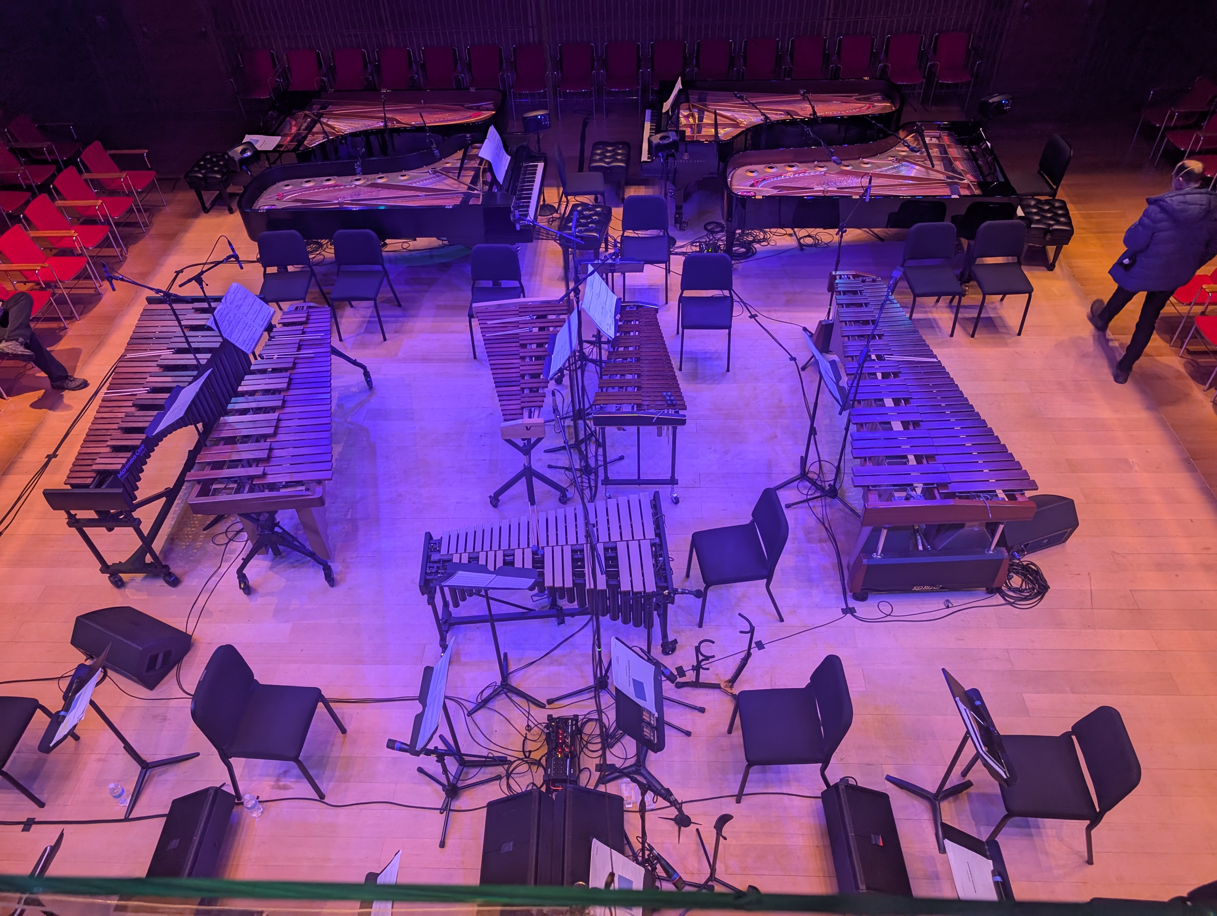 Сходил сегодня на Музыку для 18 музыкантов авторства Стивена Райха. Не думал что удастся это когда-то вживую услышать, но по случаю 50-летия произведения и 90-летия композитора вот случилось. Зал очень интересный - на 300 мест и 80% первый ряд.