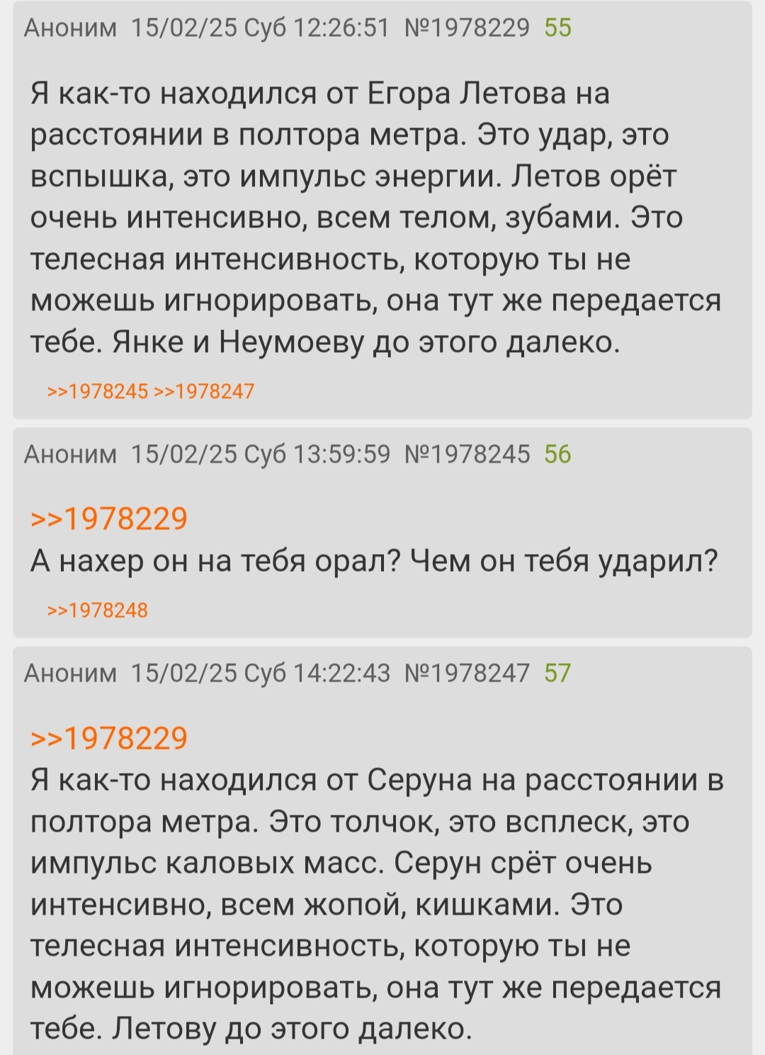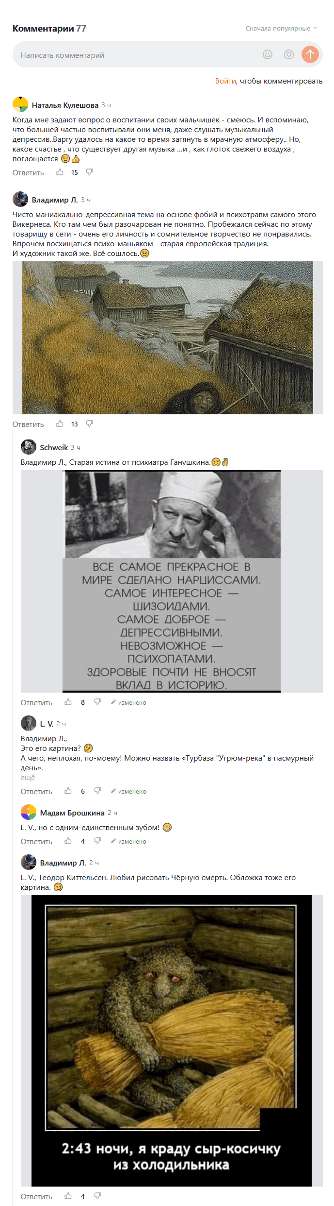 >>1978812 Вангую, что он херню спорол про бурзум и дарктхрон и теперь выдумывать начал, что хотя бы иммортал ему нравится, а не просто он ньюфаг с отдавленными брутал детхом ушами. Кстати про детх, про группу детх он тоже умудрился сказать, что ничего особенного, в сравнении с каким то суходрочерским техникал брутал месивом. На полном серьезе рассказывать такое, он еще делает это с позиции прошаренного знатока. И я бы ему реально поверил бы даже, потому что нельзя слушать столько метала и не врубаться в поджанры. Не говоря уже про то, что исполнители родоночальники и определяют жанр. Чтобы катить на них бочку должно случиться что то чрезвычайно исключительное, а у него постоянно, такая система.
