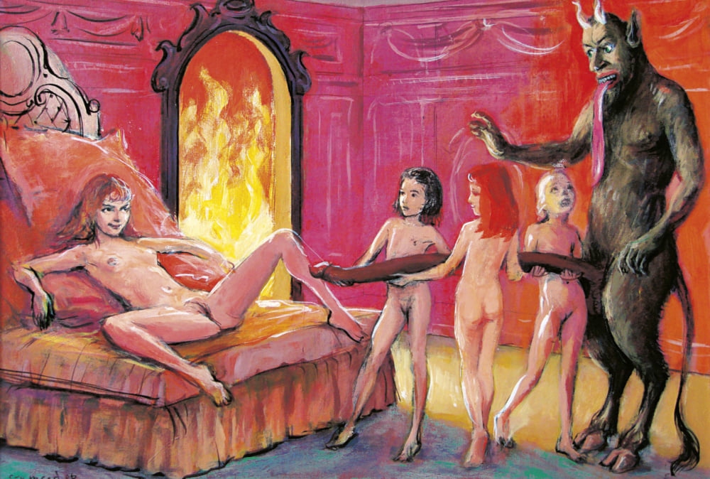 Думаю создать митол группу и обложка дебютного альбома - голая женщина на поводке на четвереньках в поводке, а поводок держит мужская рука, а ещё ей в лицо тычут кожаной перчаткой. И название группы тоже - ЗАПАХ ПЕРЧАТКИ.