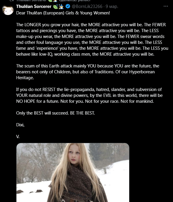 >>1978783 Расползлась любовь по черепу, И страсть по штанине течет Вот бы такая Валькирия Мою арийскость измерила И с собой позвала в полет. Мы бы старый бурзум слушали, На стене рисовали кельтский крест Я бы был её блэк-метал девочкой, А она - мой Варг ВикернЕс