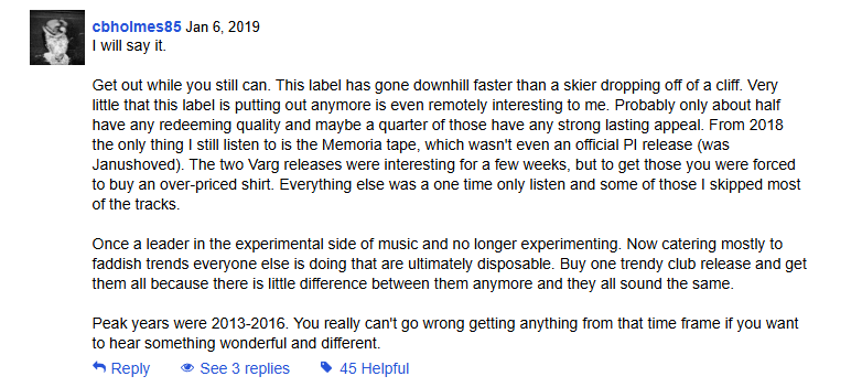 и в принципе ты и сам можешь все разузнать лол. что у него дискография бесконечная и эклектичная за 30 лет, что он гений и куда ему дотягивать до "минимализма растера" если он буквально каркас и главные релизы там - его
