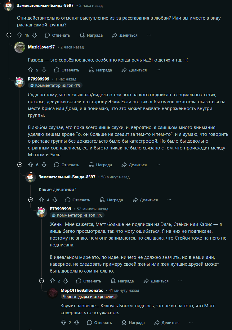 >>1997661 Они там с прошлого года по инстаграму гадают кто с кем из-за чего разводится, но если бы реально было бы "что-то ужасное", то мы бы сначала услышали новость про что-то ужасное, а потом про отмену концертов. На моей памяти это всегда происходит в такой последовательности