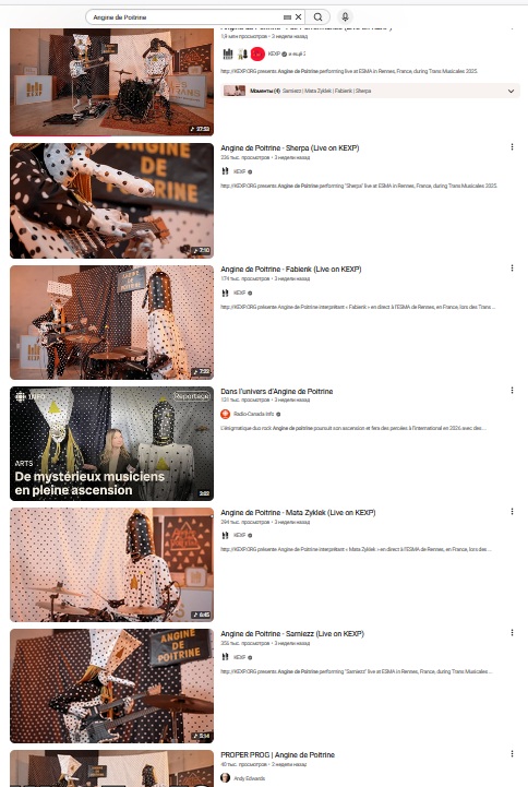 И вот именно поэтому феномен Angine de Poitrine выглядит настолько странным. Они явно выходят за рамки нормисности по всем параметрам - никак не общаются с публикой и не дают ей никаких особых поводов солидаризироваться. Музыка и по ритму и по мелодике радикально выходит за рамки привычного. Образы - точно так же, максимально вычурные, чисто французские. Коммуникации с публикой - ноль. Трансляции общих ценностей - ноль.