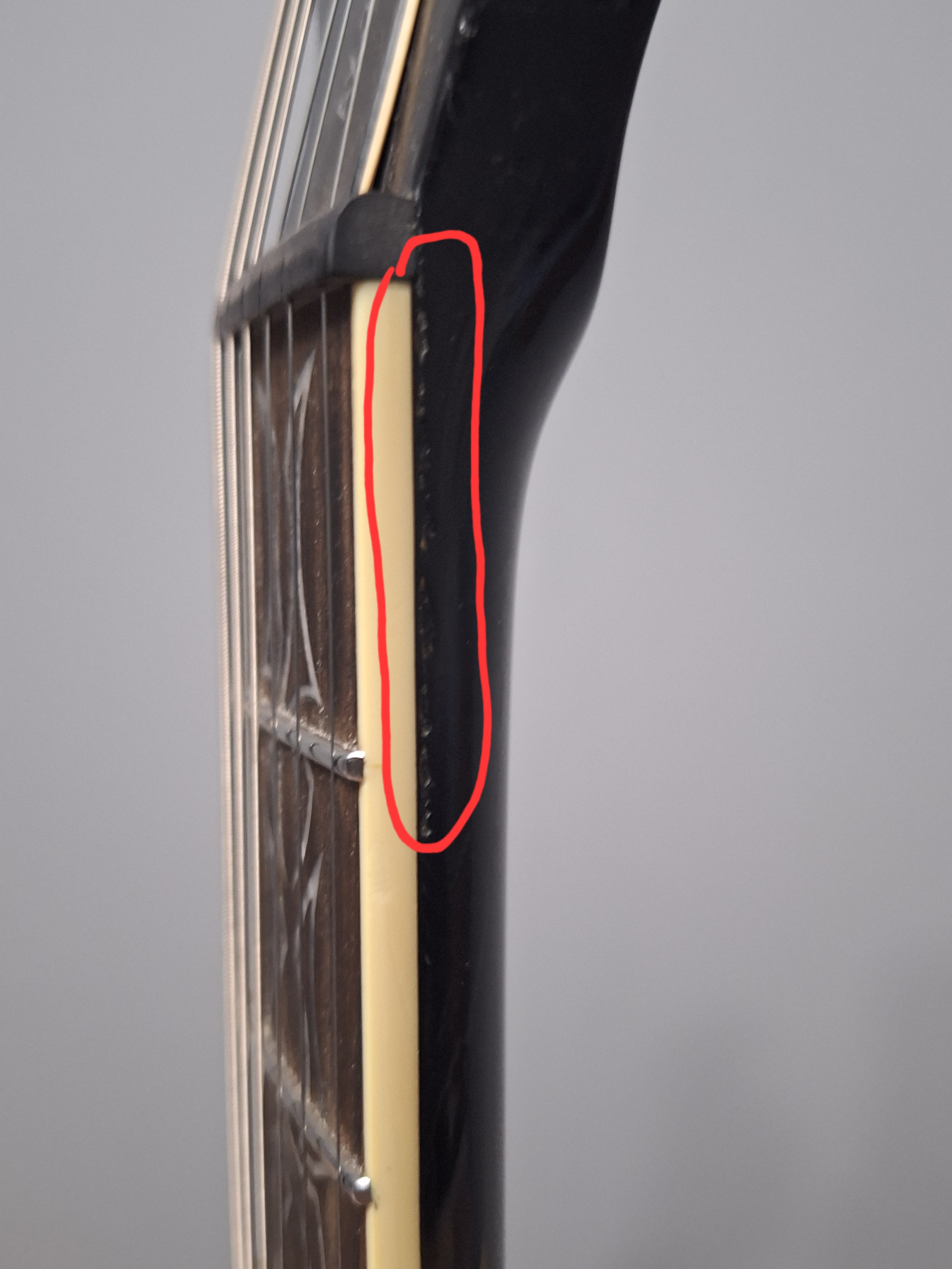 Аноны, подскажет кто что это за хуйня на стыке накладки и грифа? Это деревяшка гниёт или что? Стоит ли волноваться? Гриф сквозной, так что умирать ему категорически нельзя. Только в этом месте, причём с обеих сторон